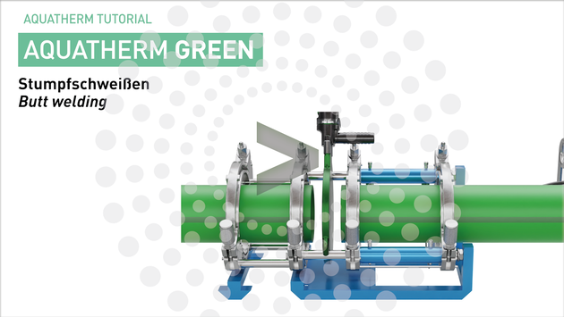 HINWEIS: sec. AQE* In Anlehnung an die DVS 2207, Teil 11 sollten die Anwärmzeiten (sec. AQT)  bei Umgebungstemperaturen unter +5 °C verwendet werden. Rohrleitungen in den Durchmessern 160 - 630 mm werden im Stumpfschweißverfahren verschweißt.