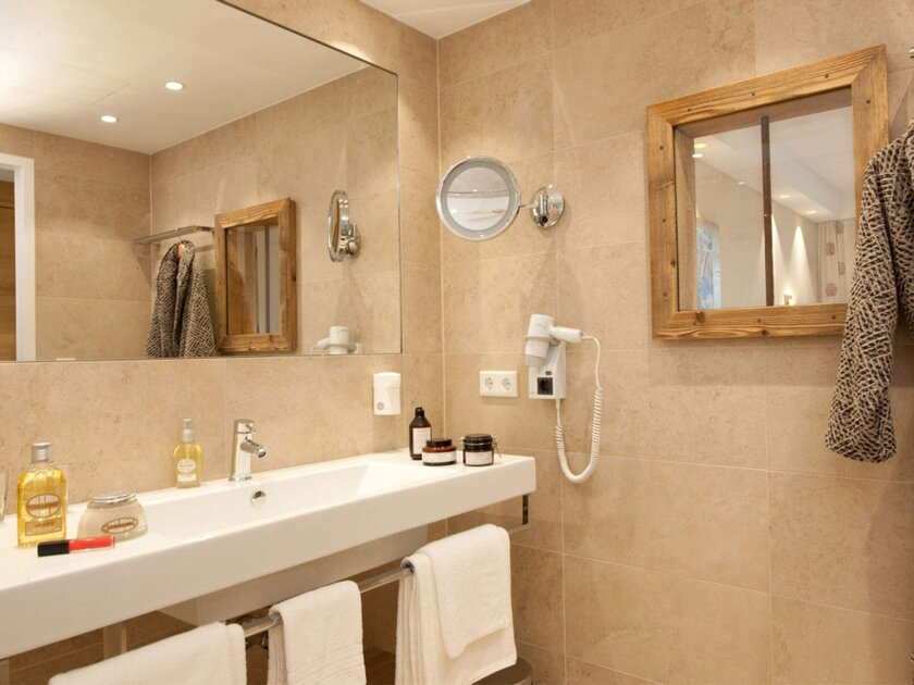 In the “Poststadl,” a total of 740 square metres of black grid were precisely fitted into the ceilings of the rooms and the walls of the bathrooms. The use in the bathroom again serves the comfort of the guests: aquatherm black has been integrated into the walls for heating and drying towels and bathrobes in two places.