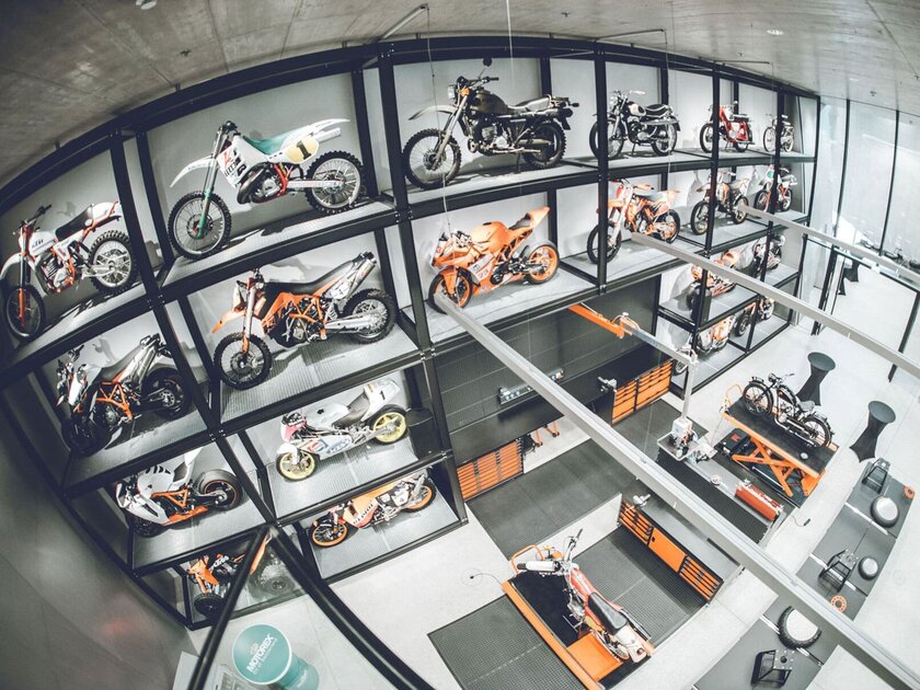 Sprinkler system from aquatherm installed almost invisibly in the KTM Motohall – Since May 2019, visitors to Mattighofen in Upper Austria have been able to immerse themselves in the world of motorcycle racing: after four years of planning and construction, the KTM Motohall opened here and has since offered insights into the history of the legendary motorcycle brand with its machines, innovations and heroes.