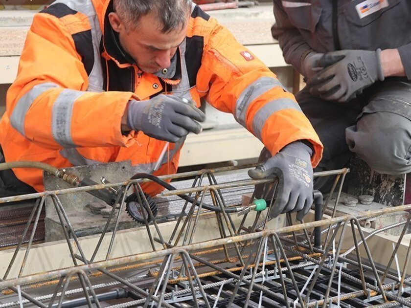 Says Zuber: “aquatherm black convinced us because we were able to achieve very little installation work in the concrete plant. The grids were inserted directly into the formwork for the individual precast elements, connected to each other and compressed with air before the concrete was let in to check for leaks. Later at the construction site, the individual prefabricated ceiling elements only had to be connected to each other.”