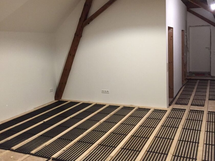 “Since the house was well insulated, we need only a low heating capacity in the attic, which is completely covered by the installation on the wall. As in the basement, the old plank floors did not have to be dismantled.”