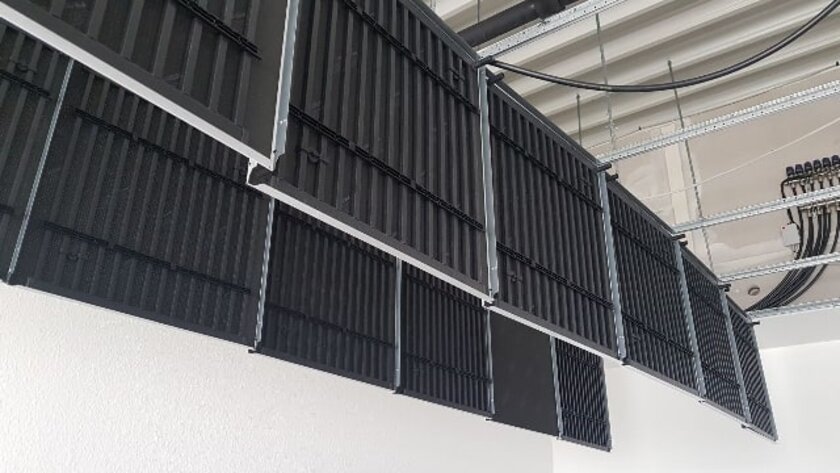 The system was assembled within a short period of time. This was made possible by the object-specific production. In the main factory of the aquatherm group of companies in Attendorn, aquatherm black was produced according to the customer‘s requirements allowing to be inserted exactly into the metal cassette ceiling, thus achieving a saving of working time.