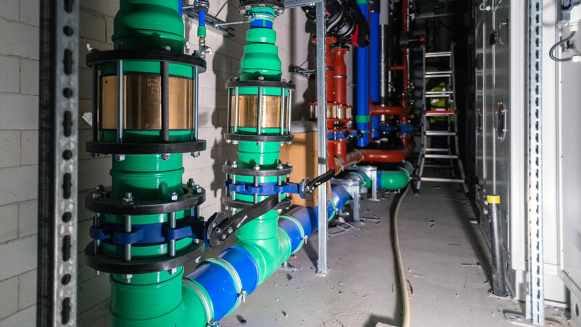In un edificio progettato per la sostenibilità come il deposito, anche le considerazioni ambientali hanno svolto un ruolo importante nella scelta dei sistemi di tubazioni. Per questo motivo, i progettisti hanno optato per aquatherm blue in polipropilene (PP-R) resistente alla corrosione, per l’impianto di refrigerazione.
