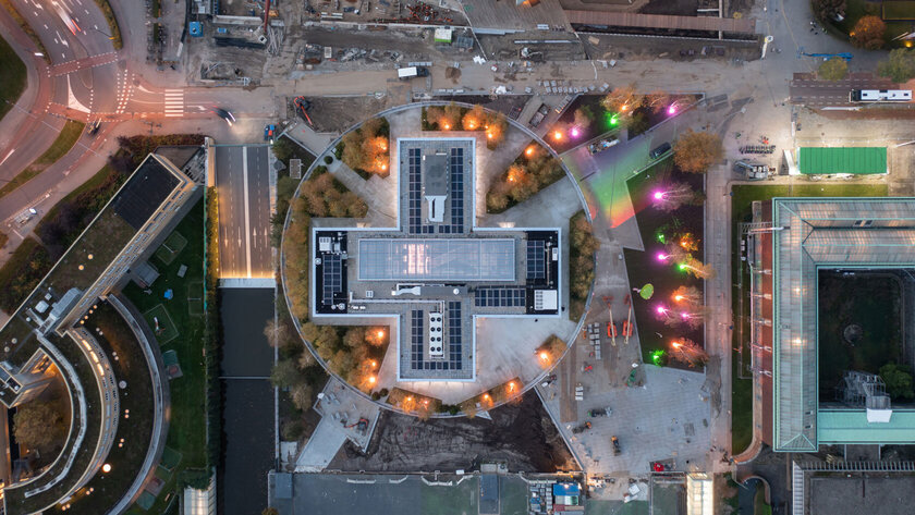 „La sfida più grande è stata quella di posare i tubi in modo rettilineo in un edificio rotondo“, spiega a Marcel Groenveld, ingegnere applicativo presso ERIKS, partner ufficiale di aquatherm in Olanda. „Inoltre, grazie all‘utilizzo di numerose aree vetrate, molti tubi sono visibili ai visitatori dell‘edificio completato. Questo ha richiesto un‘installazione molto accurata e visivamente accattivante“.