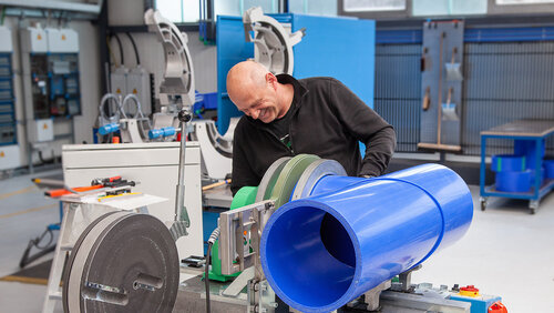 Die Rohrleitungssysteme, Verteiler und Sonderbauteile werden dann von unserem 25-köpfigen Team in unserer Vorfertigung auf ca. 1600 qm Produktionsfläche hergestellt. Nach der Fertigstellung werden die vorgefertigten Elemente von aquatherm einer Dichtigkeits- und Funktionsprüfung unterzogen, bevor diese das Werk verlassen. Somit kann aquatherm eine Garantie von 10 Jahren mit einer Deckungssumme von 20 Millionen Euro pro Schadensfall bieten.
