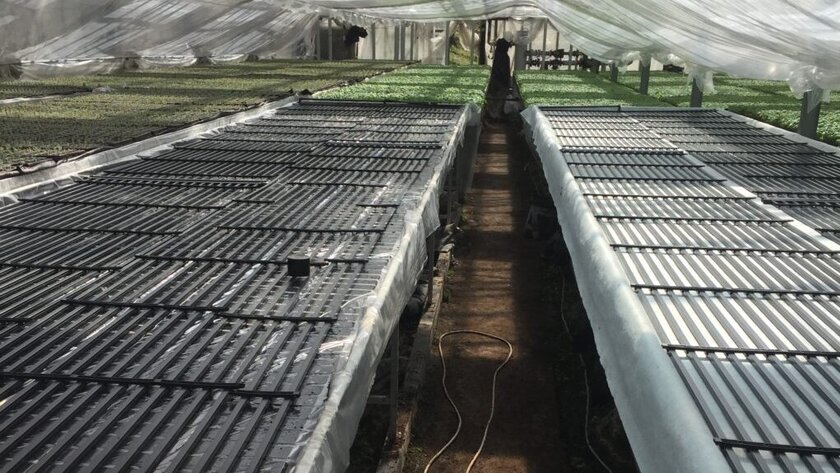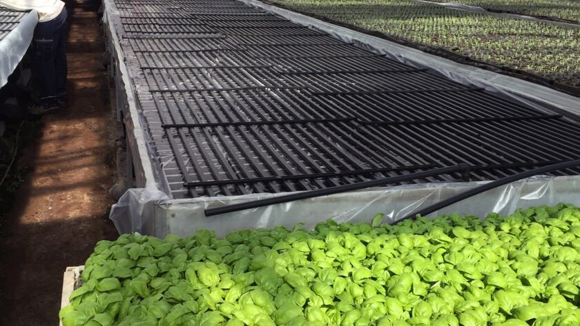 In intensiven Beratungen entwickelte Giusto zusammen mit der italienischen aquatherm Niederlassung eine ungewöhnliche Lösung zur Beheizung seiner Gewächshäuser: Die bisherigen Polyethylenrohre unter den Anbauflächen wurden ersetzt durch das Flächenheizsystem aquatherm black, das direkt in einen Hydrokulturboden eingesetzt wurde. Dabei liegen die schwarzen Register aus dem korrosionsbeständigen Material Polypropylen ständig im vier Zentimeter tiefen Wasser und erwärmen dieses gleichmäßig auf 28 Grad Celsius. Ohne dass ein weiteres Heizsystem notwendig ist, wird durch den warmen Hydrokulturboden die Umgebungstemperatur in den Gewächshäusern konstant auf 18 Grad Celsius gehalten. Dies bietet den Basilikumpflanzen optimale Wachstumsbedingungen – auch während der Wintersaison.