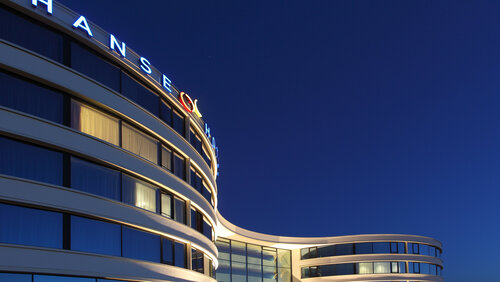 Das Hanse Hotel und aquatherm sind eng verbunden: aquatherm Gründer Gerhard Rosenberg baute das Hotel nach seiner aktiven Zeit im Unternehmen für Rohrleitungssysteme aus Polypropylen und wurde so im Ruhestand zum Hotelbesitzer. Dabei hatte er genaue Vorstellungen von dem Gebäude, das in keinem Fall ein „Schuhkarton“ werden sollte. Die futuristische Gestaltung - zwei runde Baukörper in Form einer Acht - sowie gläserne Kuppeln auf dem Dach und eine Glasfassade sind die prägnantesten äußeren Merkmale des Hotels. Der dreigeschossige Bau enthält 99 Zimmer, ein Front-Cooking-Restaurant, drei Bars sowie mehrere Tagungs- und Veranstaltungsräume.
