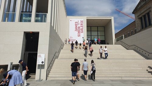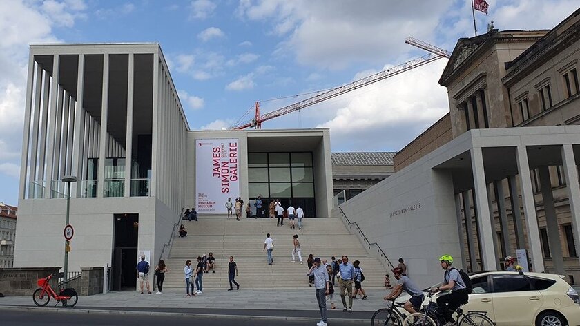 Die James-Simon-Galerie, die nach den Plänen des britischen Architekten David Chipperfield gebaut wurde, hat dabei eine zentrale Servicefunktion: Sie ist Anlaufstelle für Tickets und Informationen zu den Museen und bietet neben Café, Museumsshop und Auditorium einen Ort für Sonderausstellungen. Zudem dient sie als Zugang zum Pergamon-museum und als einer von zwei Eingängen zum Neuen Museum. Nach Fertigstellung des Masterplans wird eine „Archäologische Promenade“ das Gebäude unterirdisch mit allen fünf Museen der Museumsinsel verbinden und die Besuchermassen lenken.