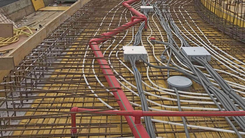 Zum Vergleich: Metallene Sprinklersysteme können nur unter Verwendung von speziellen Schutzmaßnahmen in Beton verlegt werden. Grund dafür ist Korrosion, die unweigerlich auftritt, wenn Metall und feuchter Beton aufeinandertreffen. Der spezielle Schutz von metallenen Rohrsystemen macht die Verlegung in Beton jedoch aufwändig und teuer.