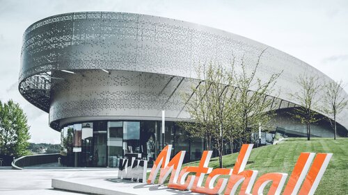 Bereits von außen lässt sich erkennen, dass sich in der KTM Motohall, die nur wenige Schritte vom Gründungsort des Unternehmens entfernt errichtet wurde, alles um den Rennsport dreht – ganz getreu dem Motto „READY TO RACE“: Eine umspannende Metallkonstruktion in Form einer Reifenspur ist das architektonische Ausrufezeichen des ovalen Bauwerkes. Innen werden die Besucher an einer nachgebauten Steilkurve durch die Ausstellung geführt und bewegen sich über Schleifen und Rampen durch das Gebäude. Diese anspruchsvolle Architektur verlangte von der Gebäudetechnik und den verwendeten Produkten ein besonders hohes Maß an Gestaltungsfreiheit.