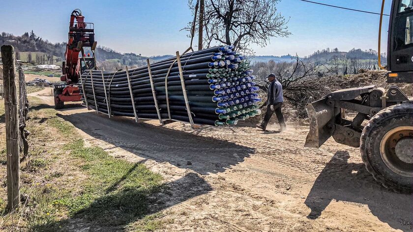 Für die Trinkwasserversorgung in den Kuppeln wurde aquatherm green genutzt. Das korrosionsbeständige Rohrleitungssystem sorgt dafür, dass die Trinkwasser-Qualität dauerhaft erhalten bleibt. aquatherm green ist nicht nur geruchs- sowie geschmacksneutral, sondern physiologisch und mikrobiologisch unbedenklich und hat seine technische Eignung in Jahrzehnten der weltweiten Anwendung unter Beweis gestellt. Für die Produktion von aquatherm green ist ein sehr viel geringerer Energiebedarf nötig als für die Herstellung von metallenen Rohrleitungssystemen. Beispielsweise wird bei der Produktion von aquatherm green 160 mm SDR 7,4 rund 83 Prozent weniger CO2 freigesetzt als bei einem vergleichbaren Stahlrohr. Damit hinterlässt das System einen deutlich geringeren ökologischen Fußabdruck. Für den Transport des Trinkwassers vom Haupthaus hin zu den einzelnen Kuppeln verwendete das Installationsunternehmen die erdverlegte Variante des Systems, aquatherm energy, auf rund 630 Metern. Es ist ideal geeignet, um Wasser sicher und effizient über längere Entfernungen zu transportieren. Das Mediumrohr aus dem faserverstärkten das sich nicht nur für die Geothermie eignet, sondern auch korrosionsbeständig, langlebig und flexibel ist und über gute Isolationseigenschaften verfügt. wird mit PUR-Hartschaum isoliert und einem Mantelrohr aus PE umschlossen, um es vor Beschädigungen durch das umliegende Erdreich zu schützen. „Bei aquatherm Rohrleitungssystemen gibt es keine mechanischen Verbindungen, sondern die Rohre werden durch Erwärmung miteinander verbunden und zu einer homogenen Einheit verschmolzen“, so „AS Impianti“. „Dies bedeutet ein Höchstmaß an Sicherheit und Lebensdauer.“ Auch für die Anbindung an Heizung und Kühlung samt neuem Brennwertkessel wurde aquatherm energy verwendet, allerdings mit dem Mediumrohr aquatherm blue. Dessen physikalischen Eigenschaften sind auf die besonderen Belange des Heiz- und Kühlsektors abgestimmt. Er zeichnet sich durch seine hohe Temperatur- und Druckbelastbarkeit aus. Hinzu kommen die außergewöhnlich guten Schweißeigenschaften und der hohe Eigendämmwert. Über 1000 Meter des Systems kamen zum Einsatz. „Das Gewicht der Rohre hat die Montage zudem deutlich erleichtert“, erklärt „AS Impianti“. „Da die Rohre aus Polypropylen deutlich leichter als Metallrohre sind, wurde die Logistik auf der Baustelle vereinfacht.“
