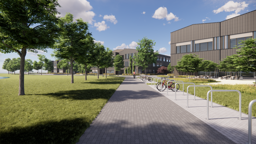 Das Grundstück, auf dem der neue Schulcampus entstehen soll, ist nahezu vollständig von Wasserflächen umgeben. Dies stellte hohe Anforderungen an die Planung, die nach dem Leitfaden für nachhaltiges Bauen der DGNB (Deutsche Gesellschaft für nachhaltiges Bauen) entstanden ist.