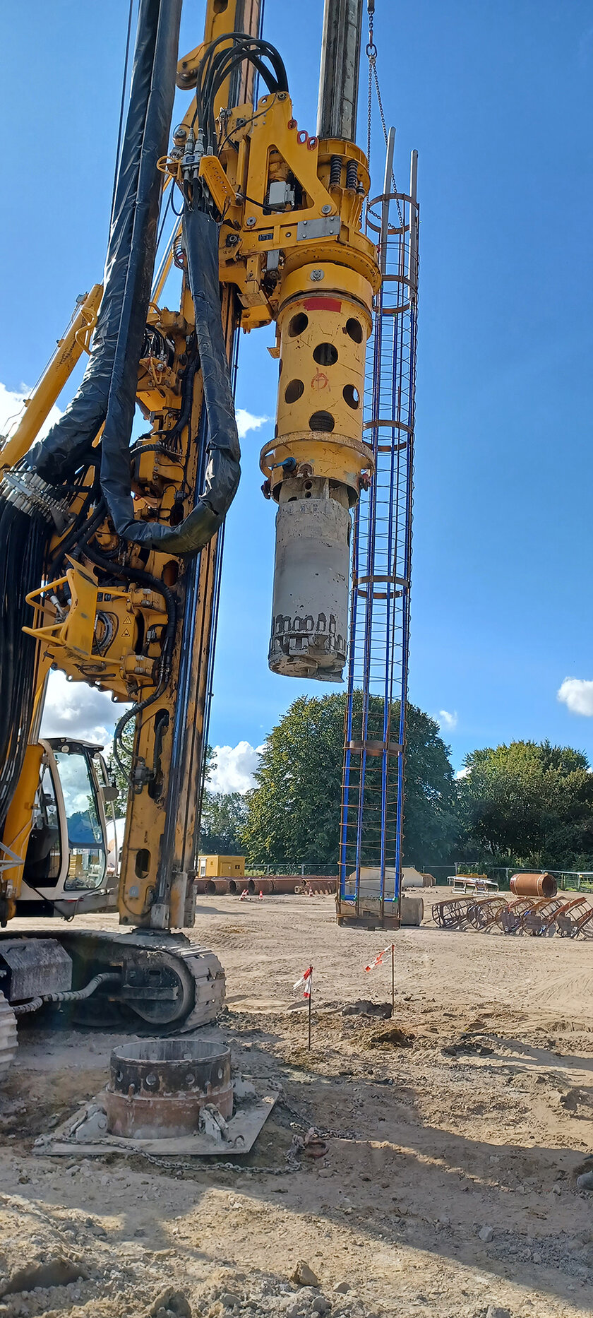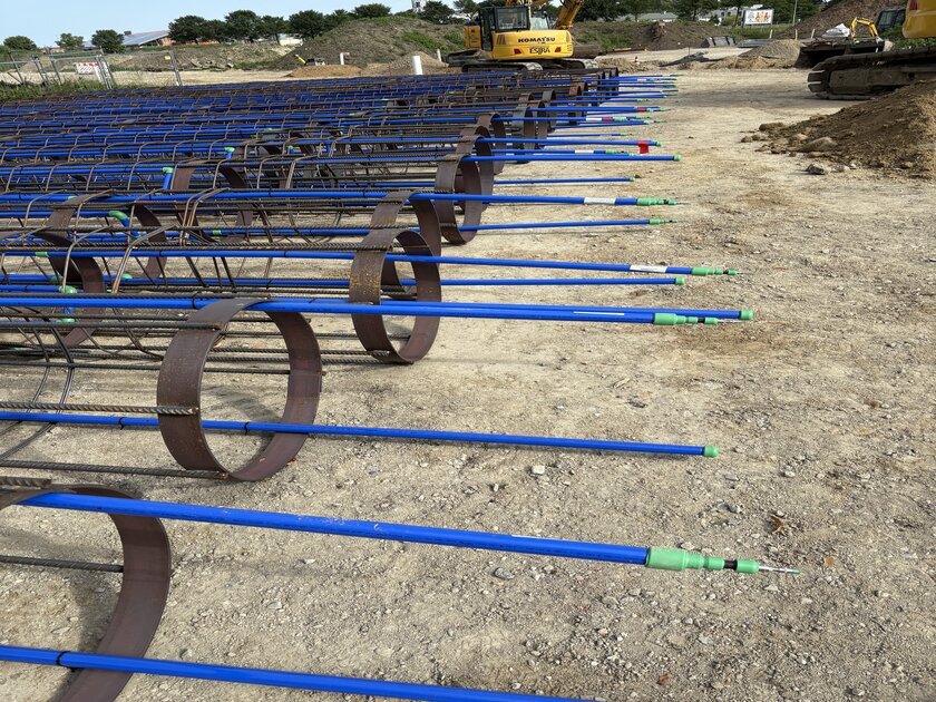 Die Sonden wurden in 210 Bewährungskörbe aus Metall eingeflochten und dann auf der Baustelle in vorgebohrte Löcher einbetoniert. Die Bohrlöcher haben einen Durchmesser von 90 bis 120 Zentimetern und reichen bis zu 12 Metern in die Tiefe.